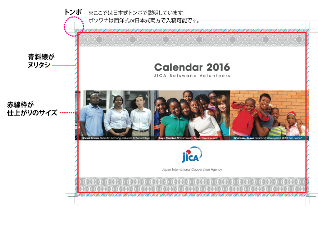 通常日本の印刷業者では3ミリのヌリタシとトンボを採用しています。