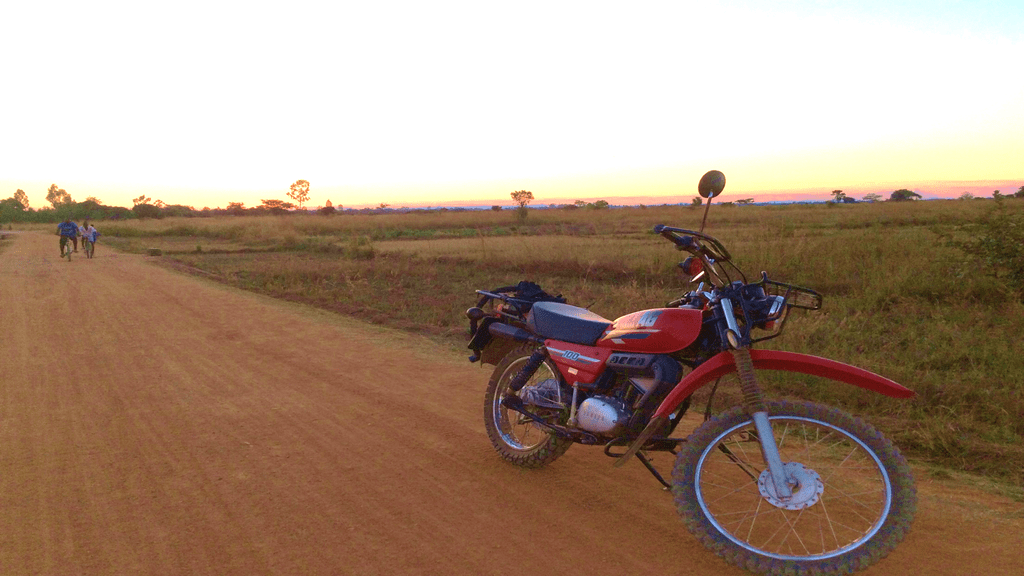 一緒にバイクで村に向かう前に、上司はガソリンがないといい、一緒にガソリンスタンドへ。