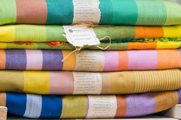 肌触りの良い100%コットンの布で、パステルカラーとストライプの模様が特徴です。ケニアの漁師が腰巻として身につけていたことで知られているそうですが、今は女性も巻いていますね。