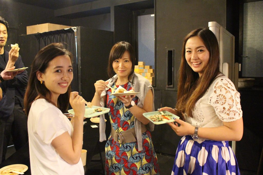 左からケータリング担当のタカコさん、co-ba shibuyaのコミュニティマネージャーめぐみさん、千津さん、かおり