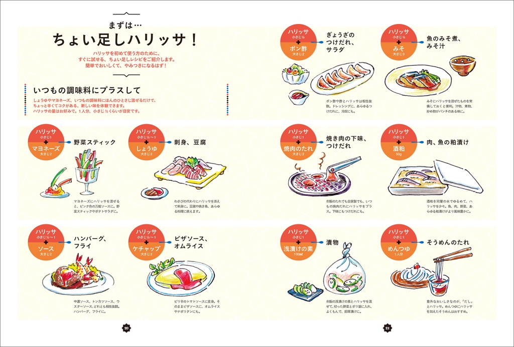 万能調味料「ハリッサ」を使った”日本初”のレシピ本『辛くておいしい調味料 ハリッサレシピ』が2017年8月2日に販売されました。本書では、マヨネーズやしょうゆ、ケチャップなどおなじみの調味料にちょい足しする簡単アイデアから、毎日のおかずやおつまみに使える簡単レシピ、ハリッサといえば欠かせないクスクスのバリエーション、ホームパーティーなどに使えて見栄えする本格料理など、辛いもの好きにはたまらないレシピを多数紹介しています。