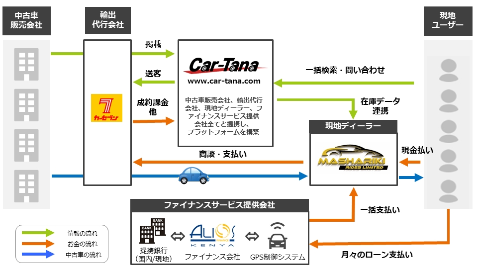 最初にサービスが開始される東アフリカのケニアでは、中古車販売のECサイトを運営するマシャリキライズ(Mashariki Rides Ltd.)と自動車ローンを提供するアリオス・ファイナンス・ケニア(ALIOS FINANCE KENYA)と提携し、同サービスを提供します。