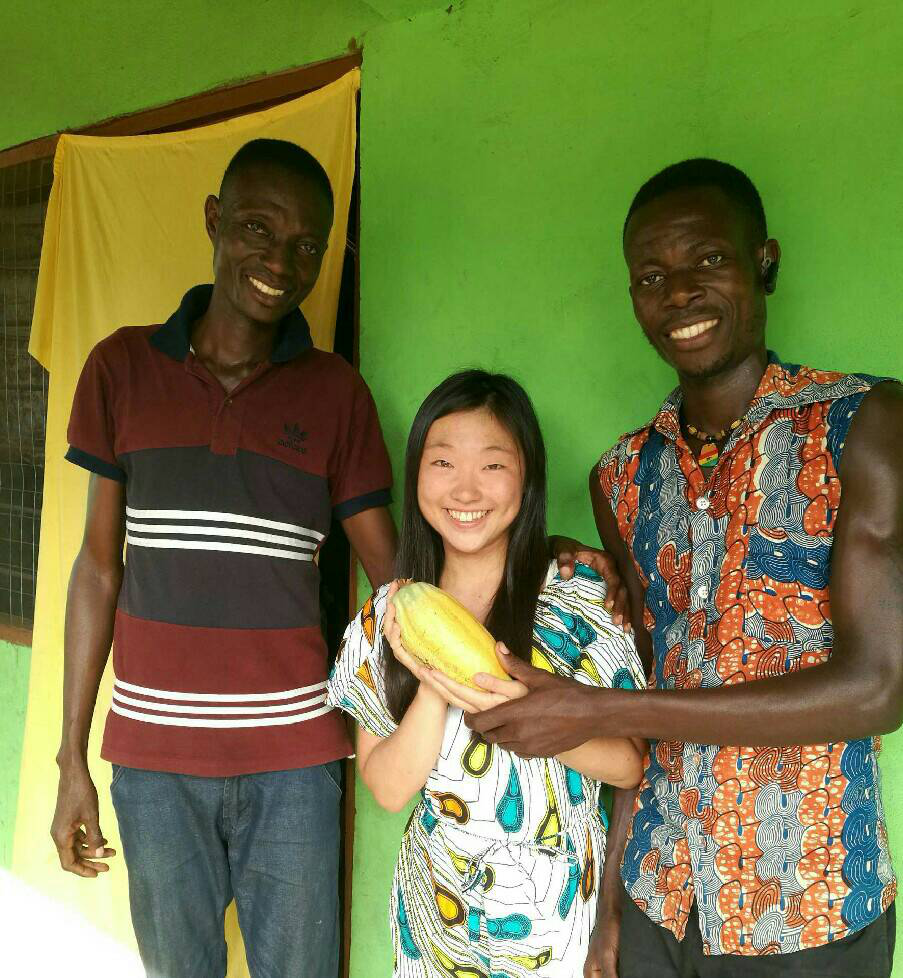 Me maakye!メマワチェ!こんにちは!上智大学2年生の髙橋佳愛(たかはしかなる)です。西アフリカのガーナのイースタン州Mpraeso Amanfrom(エッンプレーソ・アマンフロム)という小さな村で研修しています。この村に滞在し、2週間が経ちました。週末は首都アクラに戻ることができるのですが、村が楽しくて楽しくてずっと村にいる日々を送っています! 黄色のカカオポッド …