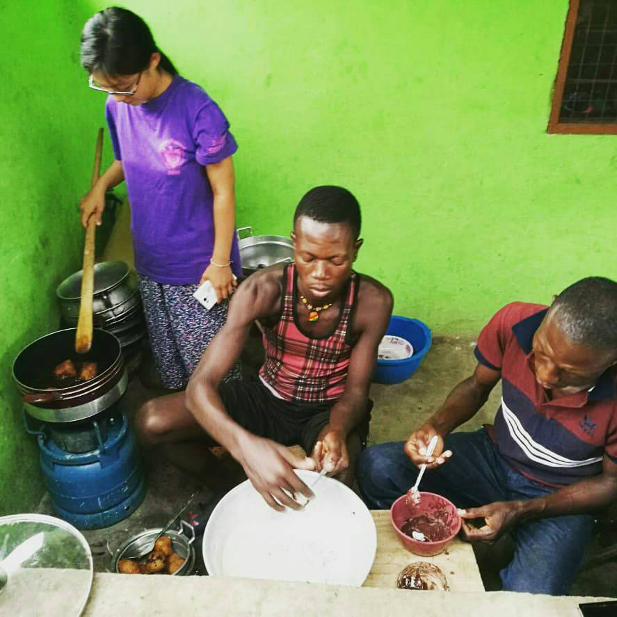 生地のレシピは村の人に教えてもらいました。1つ50gp(ガーナペセワ)で売ると、10ghc(ガーナセディ)以上の利益が出ます。毎朝作るのに手間がかかるように見えますが、早起きの村の人にとっては大したことではないようです。