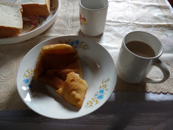 もちろん飲み物だけでなく、食事もアフリカンキッチンで作ります。今回の料理は「チャパティ」と言って、ナンとトルティーヤの間の子のような食べ物です。私は結構好きな食感です。トウモロコシの粉や茹でて潰したかぼちゃを練って作るチャパティーは、なかなか多くの油を使います。長く棒状にした生地をカタツムリのように丸めて、もう一度伸ばし焼きます。