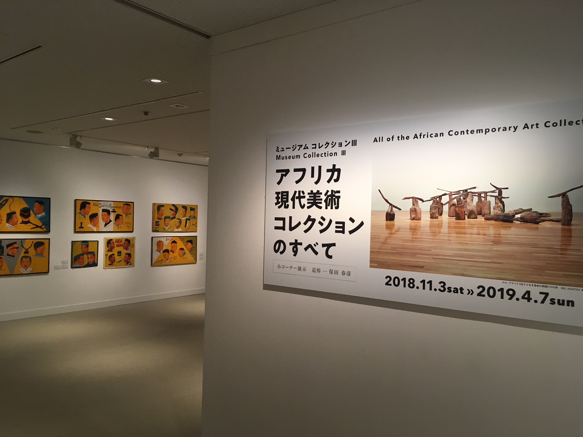 そうした時代の空気のなか、開館記念展でアフリカの仮面の調査を担当した 学芸員が、199年にアフリカの現代美術作家を現地で調査することになります。インターネット以前の時代、たいへんな苦労を重ねつつ作家を探して訪ね歩き、気づけばアフリカのパワーと懐の広さに魅了されていました。