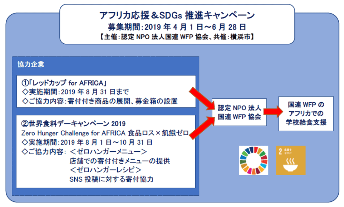 国連WFP協会は、「第7回アフリカ開発会議(TICAD 7)」の開催をとらえて、横浜市との共催により、日常生活の中でアフリカ支援やSDGs達成に貢献できる取り組みとして、「アフリカ応援&SDGs推進キャンペーン」を展開しています。