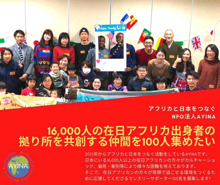 「アフリカ人によるアフリカ発展を目指す」「日本とアフリカを繋ぐ」をモットーとするNPO法人AYINA(アイーナ)が、日本にいる16,000人のアフリカの方々が主役のプロジェクトを開始します。