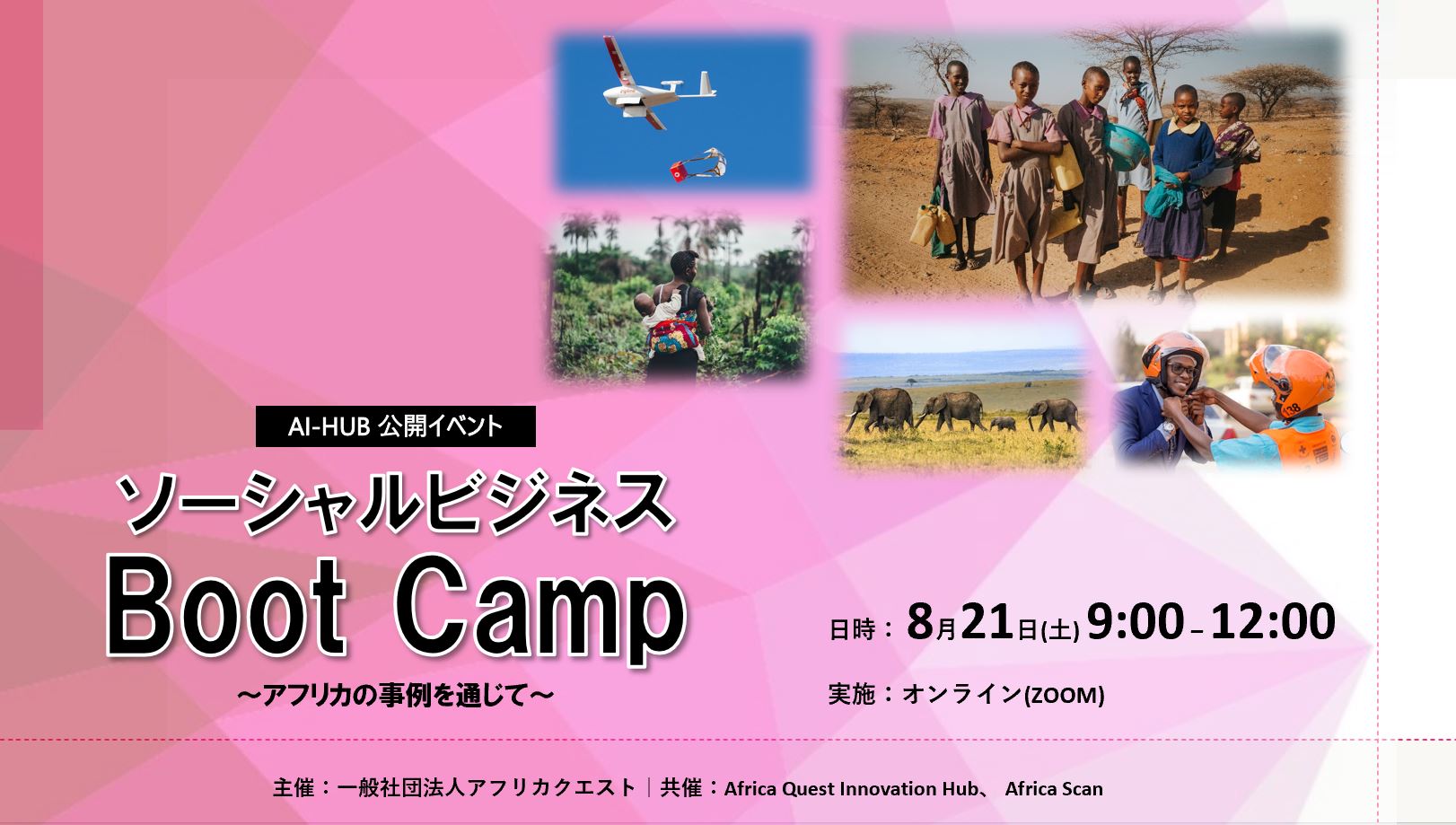 アフリカに挑戦する日本人を応援するAfrica Questは、アフリカオンラインコミュニティ”AI-HUB”との共催で、『ソーシャルビジネスBoot Camp』を開催します!!