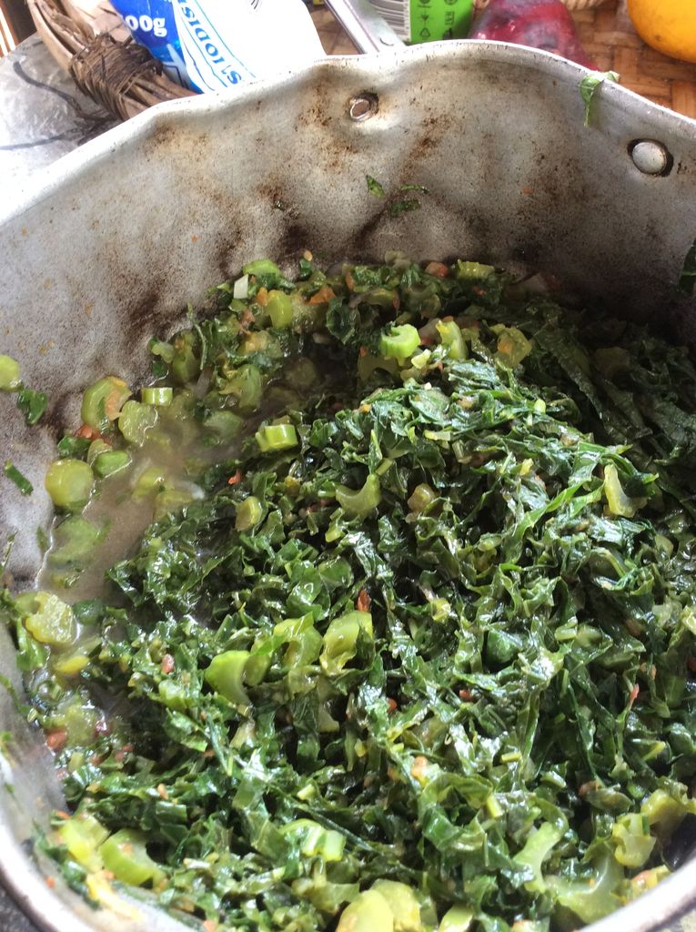 ちょうどよい粘り気になったら、鍋を火から離し、