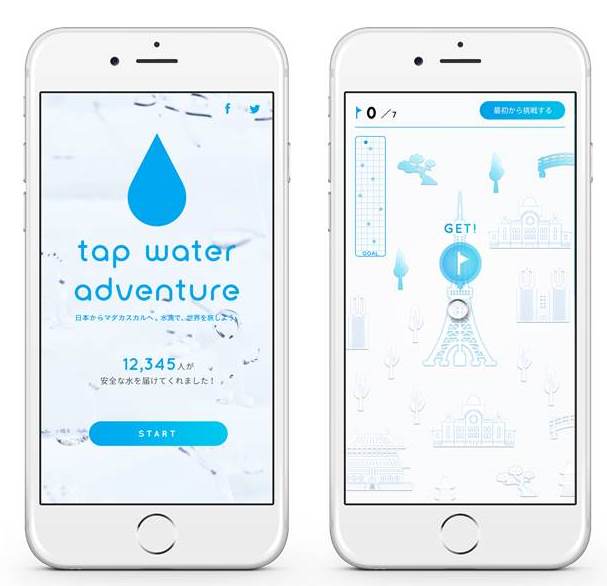 日本ユニセフ協会は、8月1日から10月31日まで実施中のレストランやカフェなどで提供される無料のお水で途上国の子どもたちへ安全な水を届けるための活動「TAP PROJECT(タップ・プロジェクト)」の2016年度特別企画として、9月1日(木)から11月3日(木)まで、水滴を操作し日本からマダガスカルを目指す、スマートフォンで遊べるミニゲーム「DIGITAL TAP WATER ADVENTURE(デジタル・タップウォーター・アドベンチャー)」を公開しました。